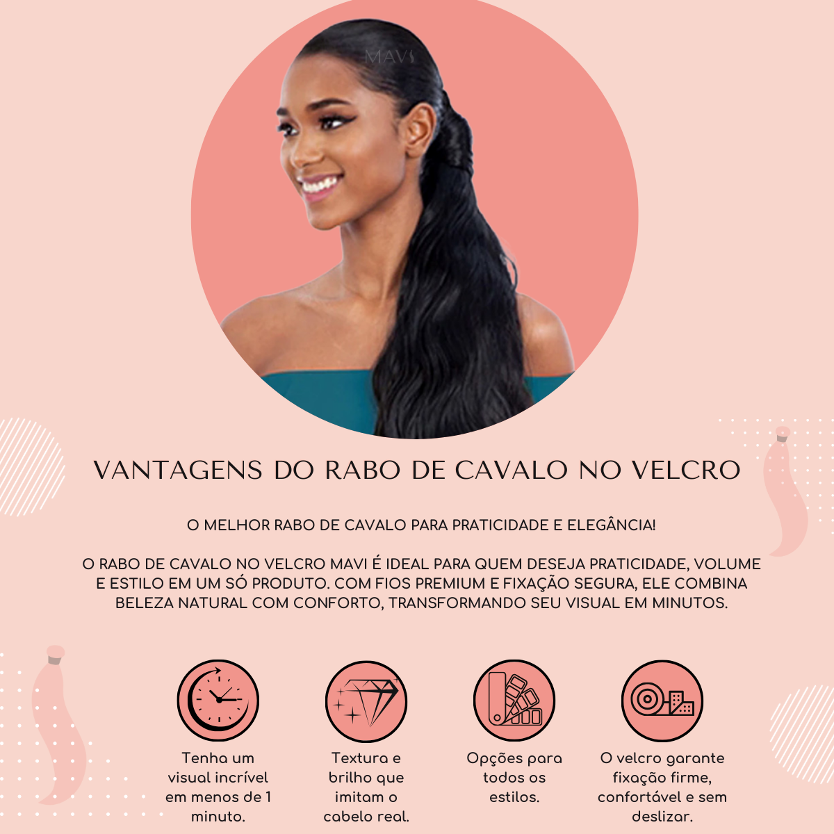 Com ondas perfeitas e volume na medida certa, o Rabo de Cavalo Mavi oferece um acabamento que chama atenção por onde você passa.